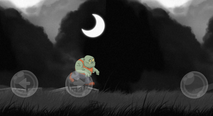1、方向移动控制:通过屏幕左侧的左右按钮操控僵尸的移动方向,在夜晚的地形中灵活调整位置,为避开障碍与危险做准备。