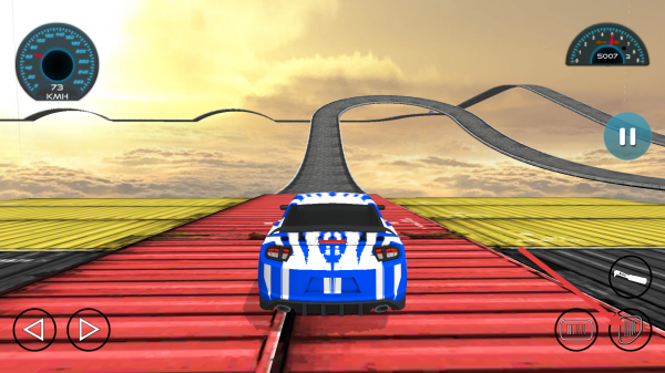 3、继续沿赛道前行,留意仪表盘,利用加速键精准的冲刺,完成高空特技,抵达终点,解锁新关卡。
