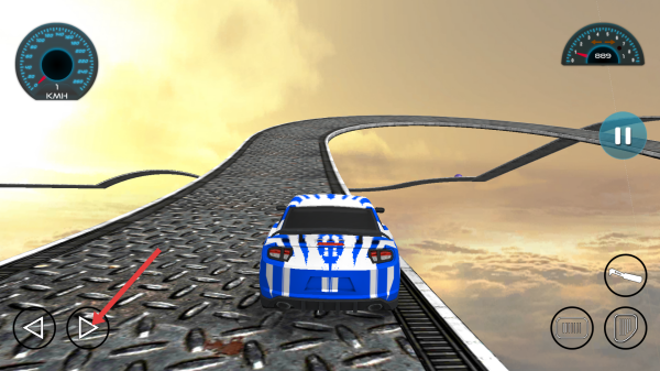 1、开启高空的赛道,需要点击右侧前进键加速,用左右箭头控制方向,冲过红色的起始平台。