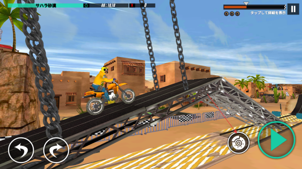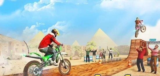 2、操控友好贴近真实:具备人性化操控设计,结合逼真的越野摩托物理效果,车辆响应灵敏,与真实特技摩托操作相近,通过刹车、跳跃按钮控制,可完成前后翻转。