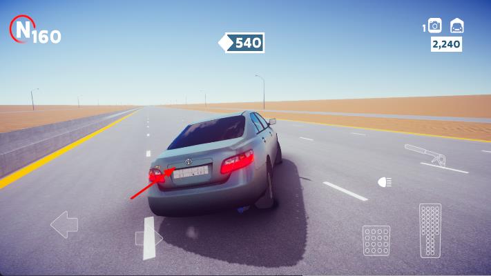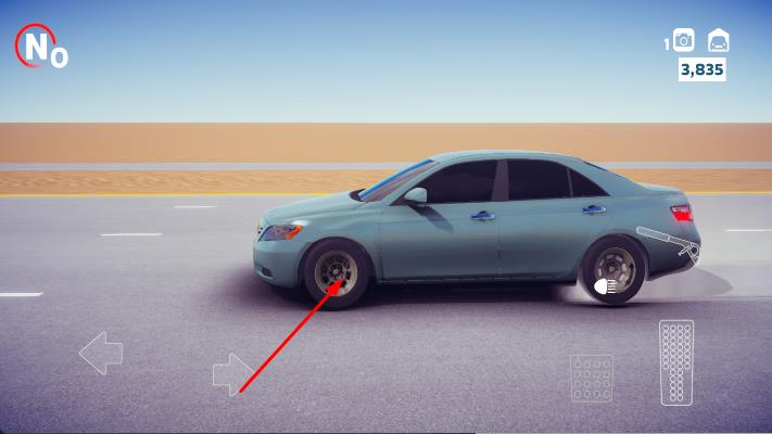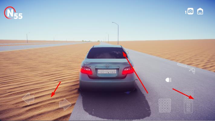 2、在场景中,通过屏幕左侧的虚拟方向按钮控制汽车的行驶方向,点击屏幕右侧的油门按钮控制汽车加速。