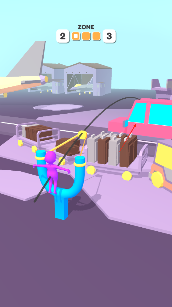 3、小人和马桶分别在马路的一边,要注意中间时不时出现的车辆,找准时机让小人飞过去落在马桶上。