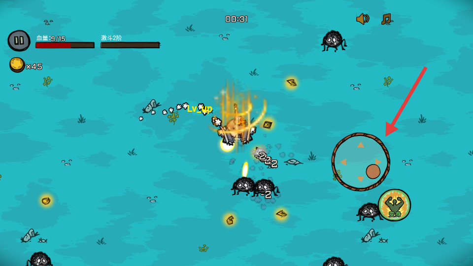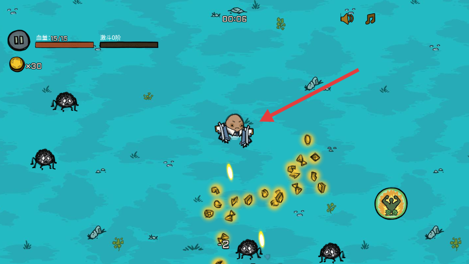 2、击杀怪物掉落经验球,升级时三选一随机技能改变战斗流派。