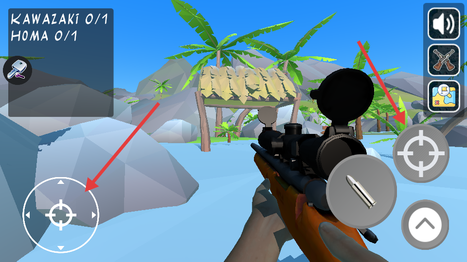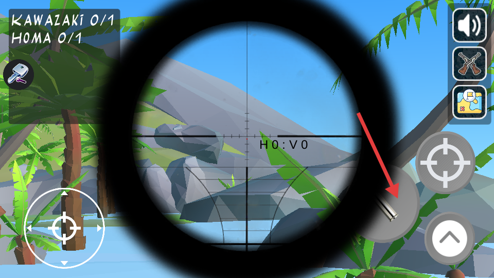1、滑动屏幕控制准星,点击右侧按钮发射对应武器弹药。