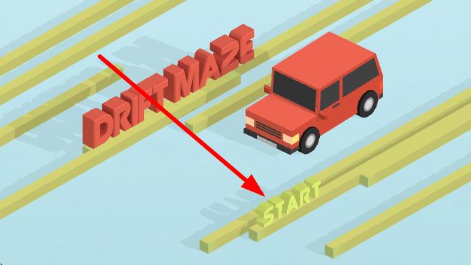 1、进入赛道,红色汽车自动启动,控制方向进行首次漂移,避开起始区域的墙壁,驶入迷宫主赛道。