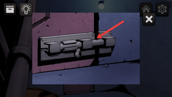 2、进入第二关,需要观察右下角门上的插销锁,判断需要解除锁具才能开门,点击开锁进入第三关。