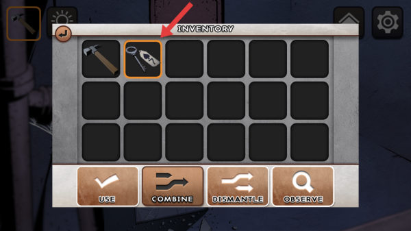 3、进入第三关需要先捡起地上的锤子,打开背包使用锤子砸破玻璃柜,捡起钥匙并进行使用。