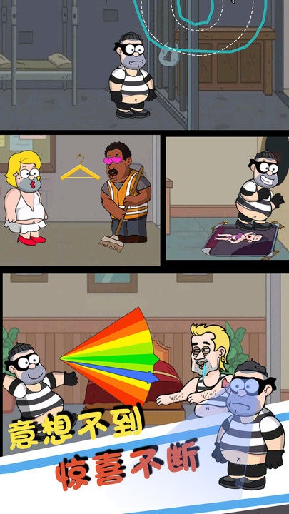 2、通过点击、滑动等交互,指挥囚犯移动如绕开警察视野、利用场景隐藏,完成逃脱任务过程中留意警察行动逻辑,调整策略。