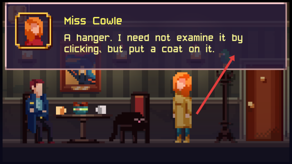 2、根据Miss Cowle提示,寻找coat外套等相关的道具,接着查看物品栏,尝试组合使用或者运用。