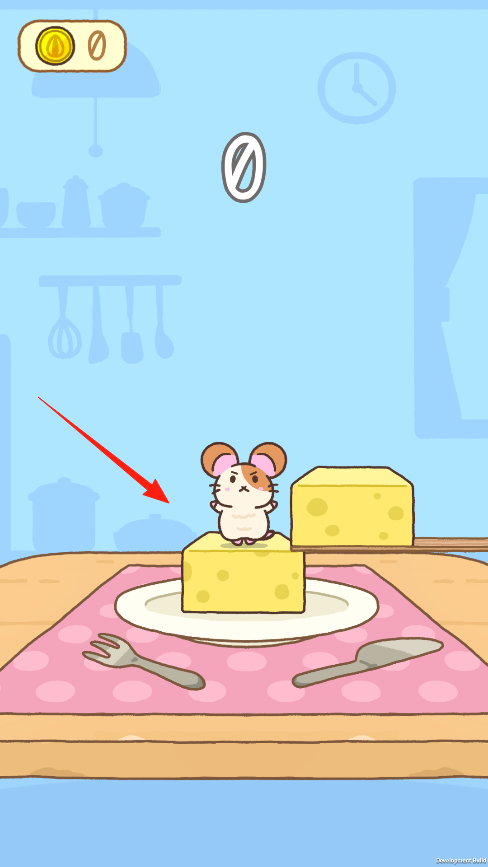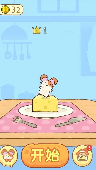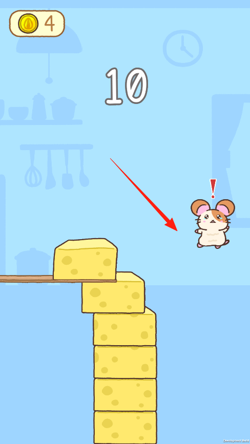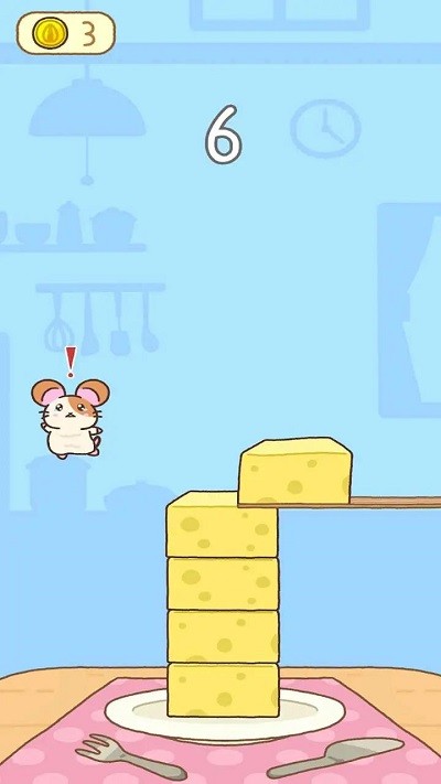 2、控制仓鼠从木板跳到奶酪堆上,每成功一次就能得1分,目标是要拿到10分,看到仓鼠头顶红色感叹号时要小心,说明平台要塌了,得赶紧跳到下一块奶酪上。