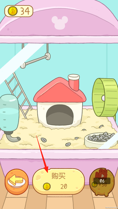 3、花20金币点购买按钮能给仓鼠添置新家具,像那个绿色跑轮玩久了会加分,点+30按钮可以快速获得金币,不过每天只能领几次,要省着点用哦。