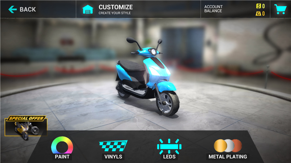 2、拥有无数种自定义选项,乙烯基贴花、零件组件、颜色喷涂,打造出独一无二的摩托座驾,让你的爱车在竞速场上与众不同。