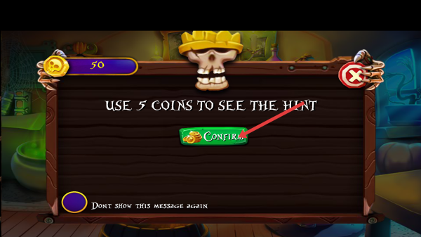 2、弹出提示框时,如果卡关,可花5金币点CONFIRM看提示,想跳过提示,勾选Don't show。