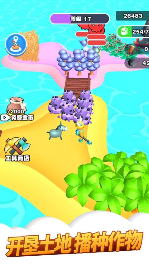 2、攒够金币就去商店买种子和工具,种地能稳定获取食物,升级工具后砍树挖矿也会更快更省力。