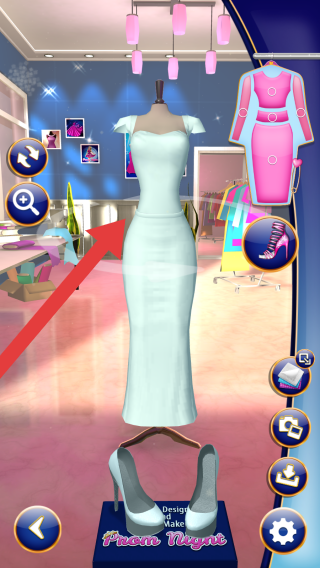 2、进入到场景内,我们需要先对礼服进行改造,改造可根据玩家自身的喜好进行操作,可选择屏幕进行观察。