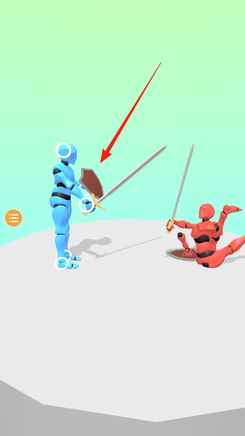 1、蓝色机器人可以用盾牌格挡红色机器人的进攻,看准时机还能用剑反击,红色机器人跪地攻击时会有短暂硬直,这时候绕到侧面攻击效果最好,不过要注意它起身后的快速反击。