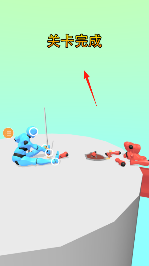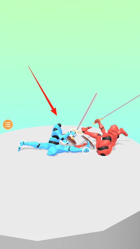 2、两个机器人都倒地时,要快速点击屏幕让蓝色机器人先站起来,长剑交叉时会触发QTE环节,按照提示滑动屏幕能发动强力劈砍,把红色机器人彻底击倒。