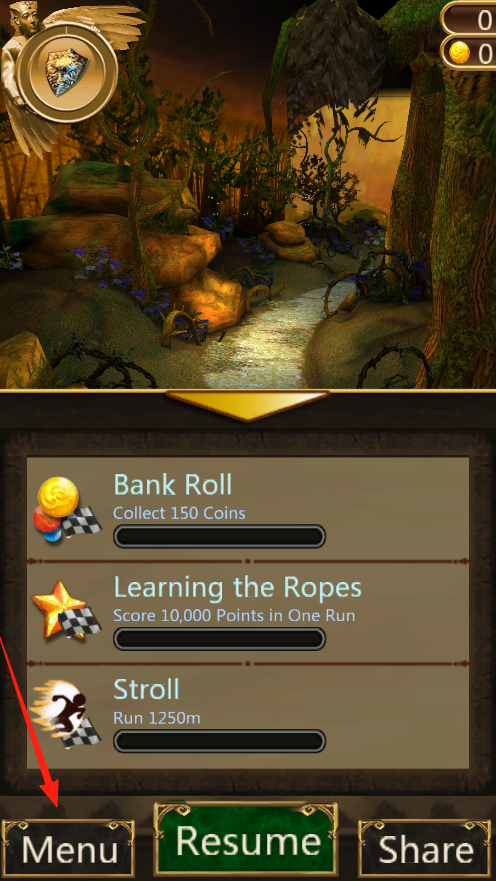 1、跑酷时要同时完成三个任务,收集金币,刷高分和跑够距离,左上角的翅膀盾牌图标可能是特殊技能,遇到分岔路记得选金币多的那条,攒满150个金币就能完成Bank Roll任务。