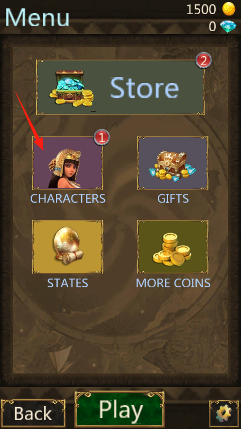 2、主菜单这里金币和钻石要省着用,商店红点提示有新物品上架,角色栏还有个新人物待解锁,更多金币按钮可以看广告赚外快,不过每天有次数限制,建议留着买重要道具。