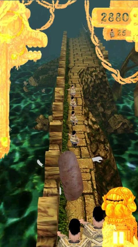 2、看到前方有断路或陷阱要提前反应,及时跳跃或变换路线,保持速度的同时别让焖子被良子抓到。