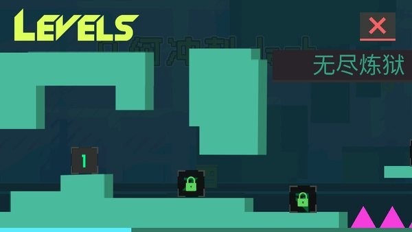 1、先点那个标着1的黑色方块开始第一关,其他带锁的方块要等通关后才能解锁,右上角的无尽炼狱是特殊模式,得先通关基础关卡才能挑战,里面的几何方块排列会更复杂哦。