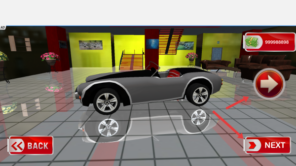 1、游戏开始时,你会看到一辆汽车停在一个室内场景中,点击界面上的NEXT按钮,即可进入下一步,开始你的停车挑战。