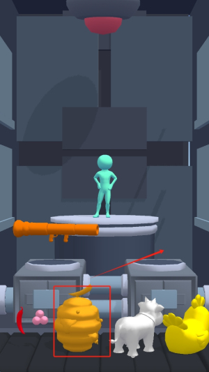 3、操作角色:拖动橙色武器至角色手中,准备进行游戏操作。