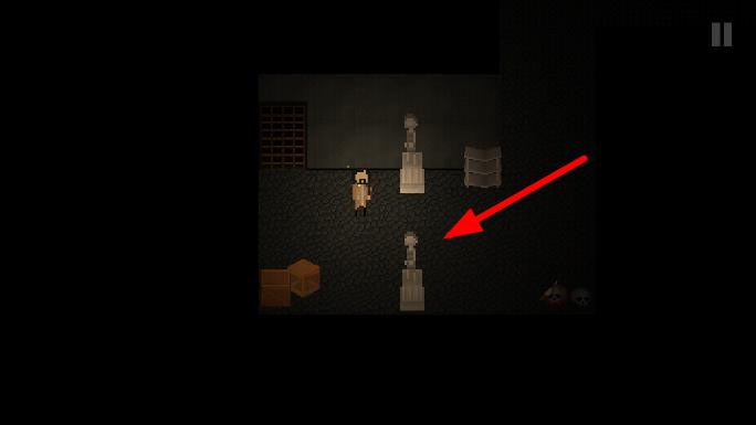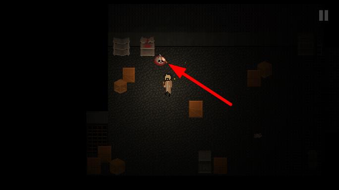 1、进入场景界面,操控箭头指向角色,在黑暗场景探索,留意周围箱子、道具,避开潜在危险,推进剧情。