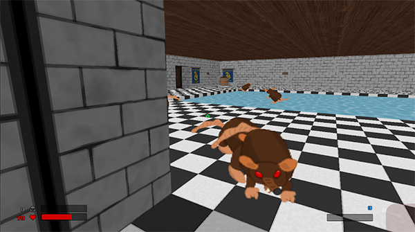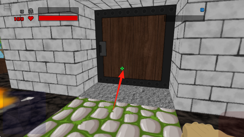 2、进入石屋,门需交互开启,屋内有巨型老鼠敌人红眼睛,战斗会减少生命值,需击败敌人、探索房间,推进冒险。