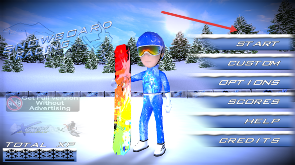 1、点击界面右侧START按钮,进入Snowboard Racing游戏,在关卡选择页选定01关卡,开启雪地竞速挑战。