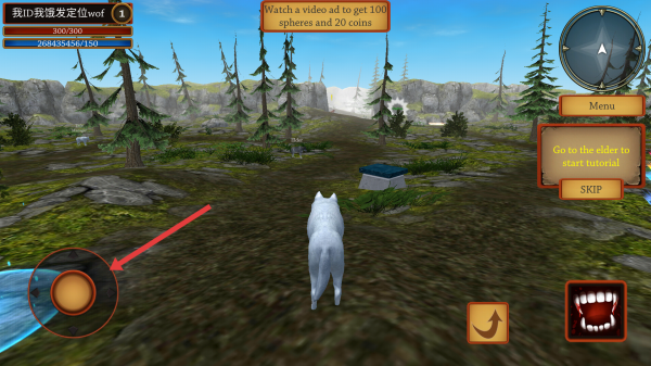 2、在游戏中,使用屏幕上的虚拟摇杆来控制角色的移动方向,在森林场景中自由探索。