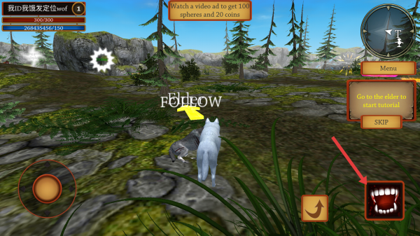 3、当遇到其他角色时,根据屏幕上的提示,点击咬,攻击你面前的狼,获得资源。