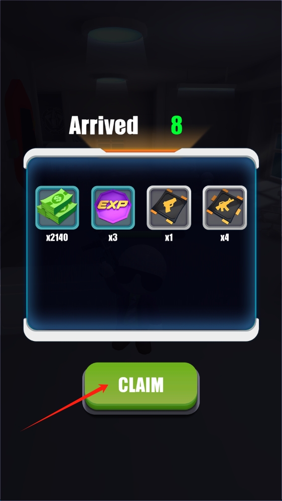 3、完成关卡后,在奖励界面点击CLAIM,领取金钱、经验和武器等奖励,提升特工实力,推进游戏进程。