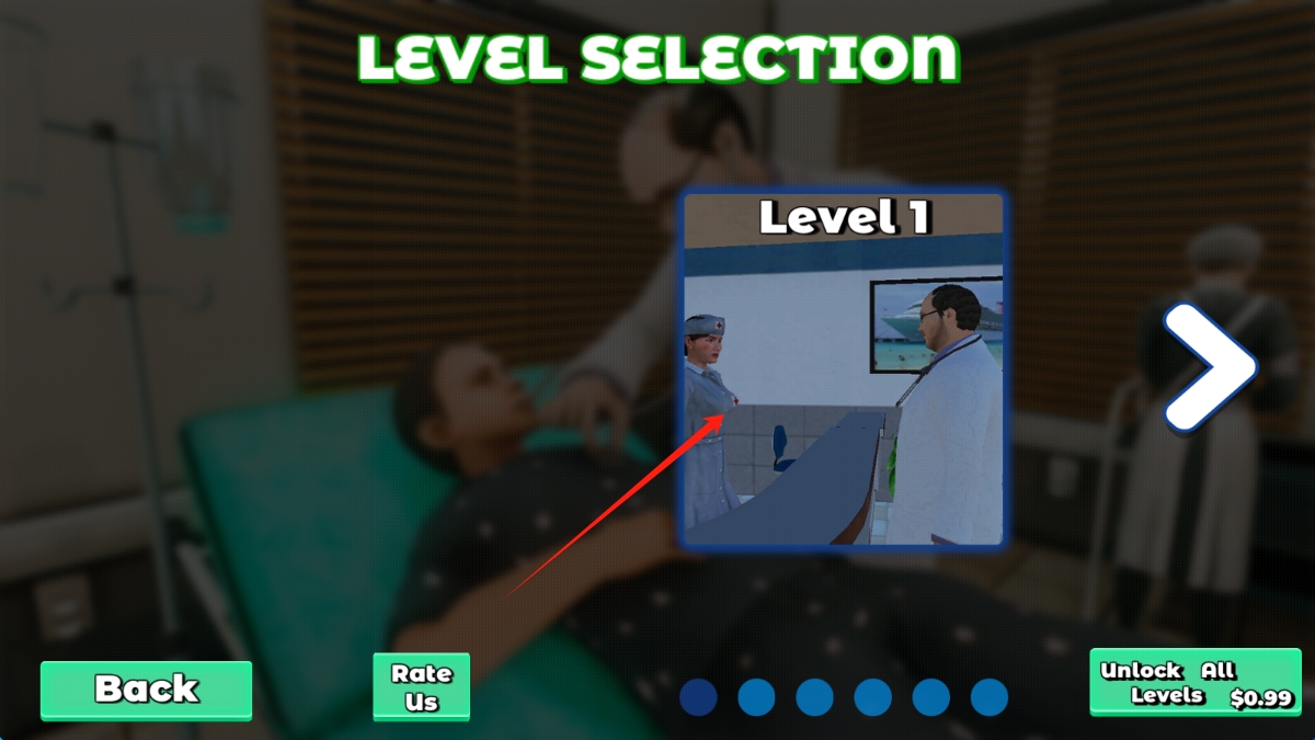 2、选择Level-1,从基础医院任务开始,熟悉医院环境和操作机制,点击选择关卡。
