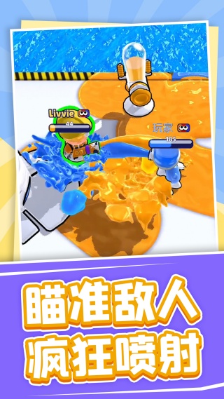 1、创新的颜料射击玩法突破传统竞技模式,玩家通过喷射彩色涂料占领地盘扩大优势,既需要精准射击技巧,又考验战略布局能力。
