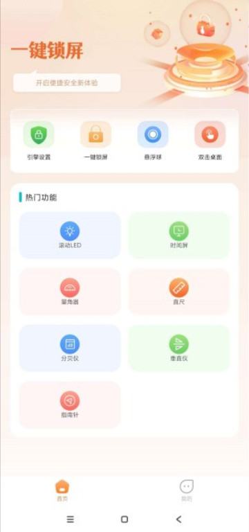 一键锁屏熄屏app不仅是锁屏工具,更是你手机的得力助手。无论是为了保护隐私,还是为了省电,它都能轻松实现。无论是开会、上课,还是约会、睡觉,它都能一键搞定,还你清爽的使用体验。告别繁琐的按键,这款轻巧的App让你一键即可锁定屏幕、关闭显示,省时又省力。总之,这是一款让你手机屏幕从此听话的App,不服?那锁屏试试。