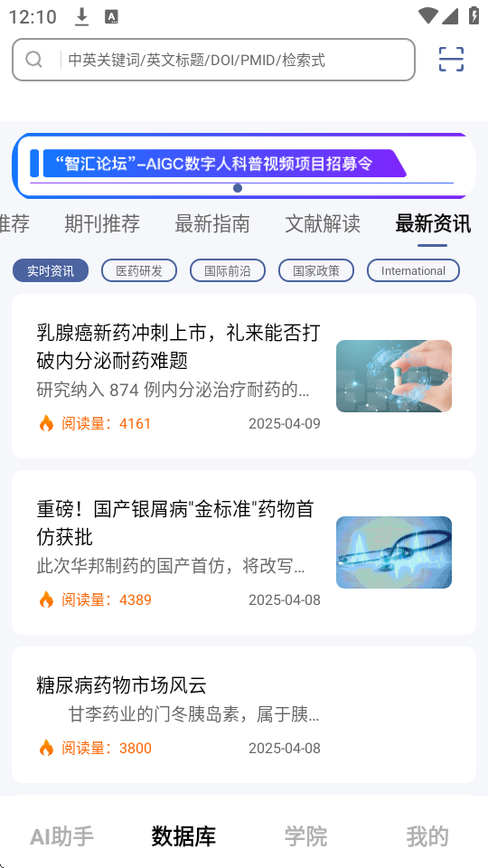3.每日更新前沿医学资讯,首页智能推送热门知识,确保用户随时获取最新行业动态。