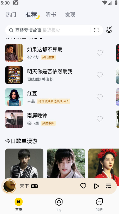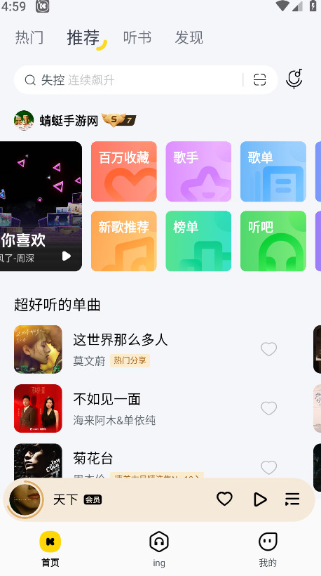 5.接着在首页上方的搜索框输入关键字即可找到我们喜欢的歌曲。