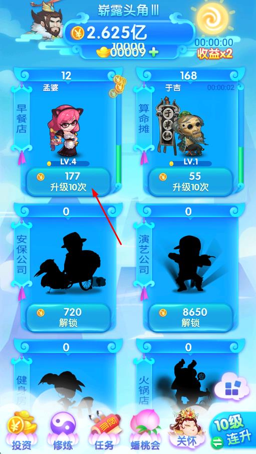 1、进入游戏选择初始神仙,通过点击修炼按钮积累修为,完成日常任务获取养成资源,提升神仙等级。