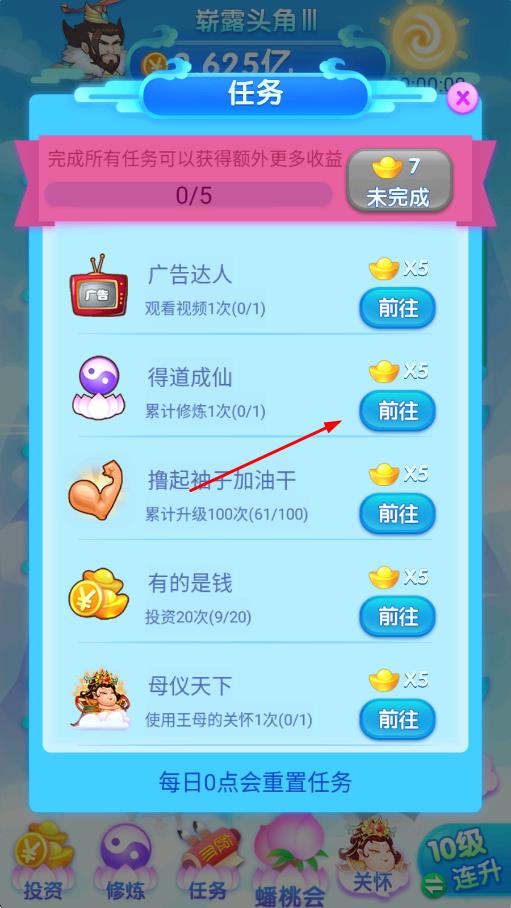 1、日常修炼规划:每日优先完成修炼任务与副本历练,合理分配修为值提升核心神仙等级,利用修炼功能积累离线收益,高效推进进度。