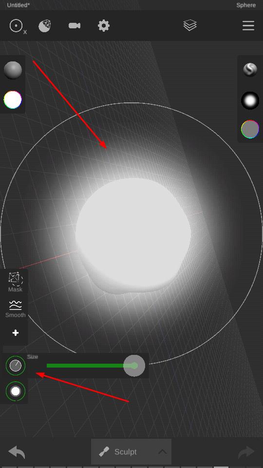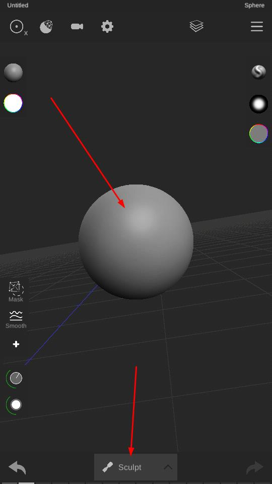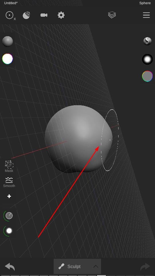 1、进入软件界面点击底部Sculpt按钮,启用雕刻工具,选定中央球体模型作为雕刻对象。