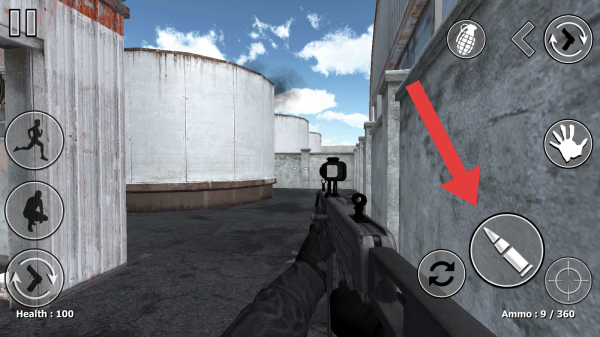 3、玩家处于废弃工厂的场景内,需要滑动屏幕环顾四周的环境寻找僵尸的具体位置,再进行屠杀。