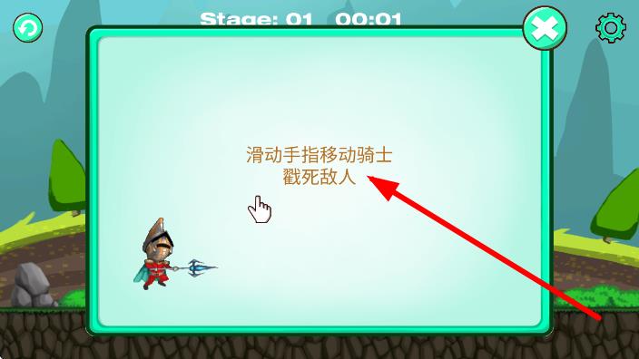 2、在Stage:01,按“滑动手指移动骑士戳死敌人”提示,滑动屏幕控制骑士移动,瞄准敌人发起攻击。