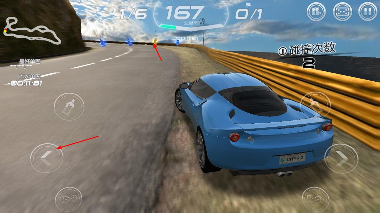 2、赛道中需根据弯道角度提前减速,打方向盘同时轻踩刹车完成漂移,保持车速冲向终点超越对手。