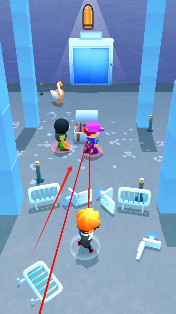 2、进入游戏场景,操控特工角色,精准射击敌人,注意场景中的鸭子等元素,关注子弹数量。