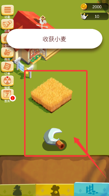 3、跟随页面的教学提示,手持镰刀割取成熟麦穗,可体验丰收喜悦。