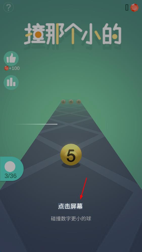 1、进入撞那个小的苹果版,操控初始圆球在赛道出发,观察周围小球的大小,找准比自己小的目标,果断上前撞击。
