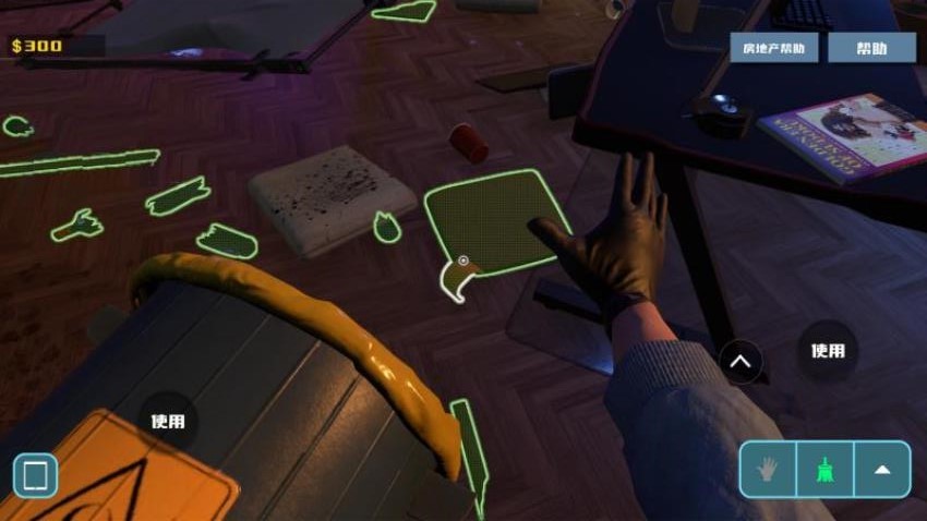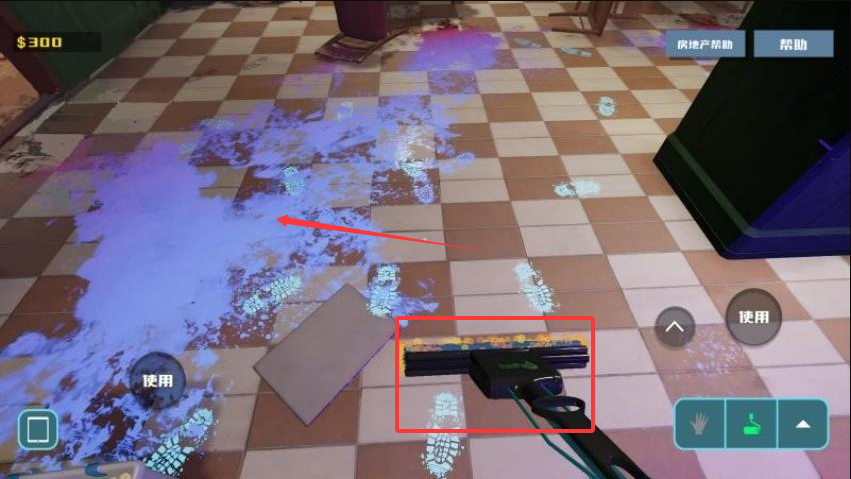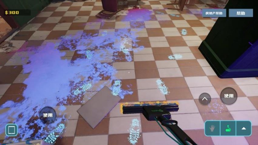 4、使用拖把,对污渍进行清洁,即可完成关卡。