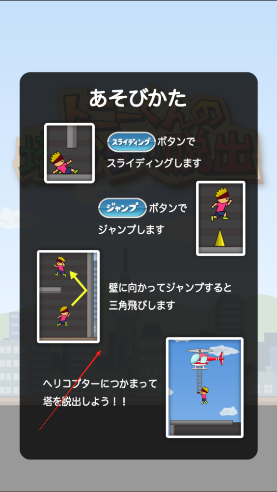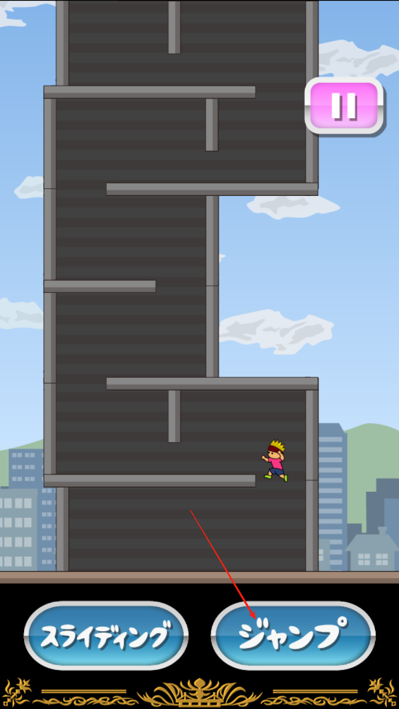 2、到墙面时点击跳跃,小人会进行三角跳,反向跳到平台上,遇到凸出的障碍时要点击滑铲才能通过。