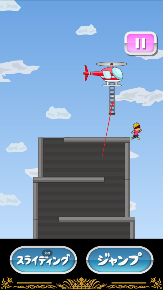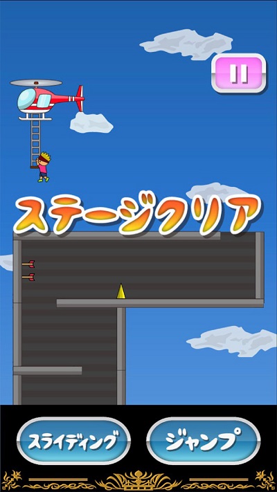 3、小人爬到楼顶时,要点击跳跃才能跳上直升机,否则小人会直接顺着路往前冲掉下大楼。